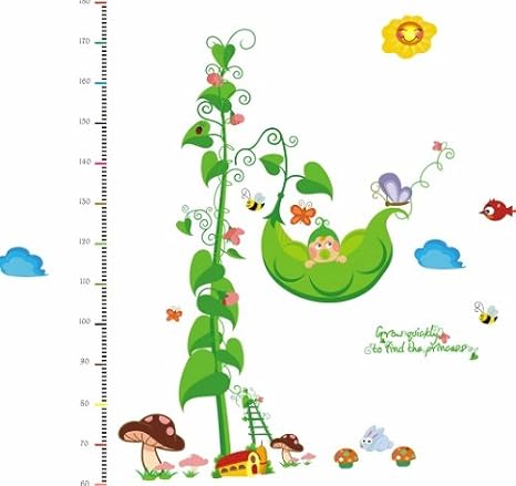 Amazon ウォールステッカー 身長計 グリーン 豆 目盛り 身長計 キノコ 赤ちゃん 豆の木 太陽 測る かわいい 壁紙 おしゃれ 雲 森 子供部屋 子供 玄関 リビング 測れるステッカー キッズルーム 教室 塾 店 プレイルーム 待合室 病室 病院 幼稚園 保育園 おもしろい